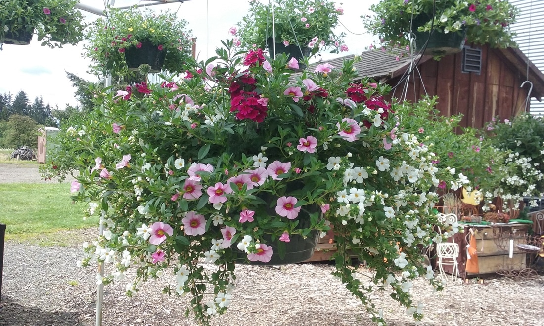 We now have our hanging baskets on special for 2 for $50! We have some beautiful red/white/blue baskets for your memorial day weekend, as well has the other beautiful, colorful hanging baskets! They are full of blooms! We also have a full line of herbs, and some fun succulents.